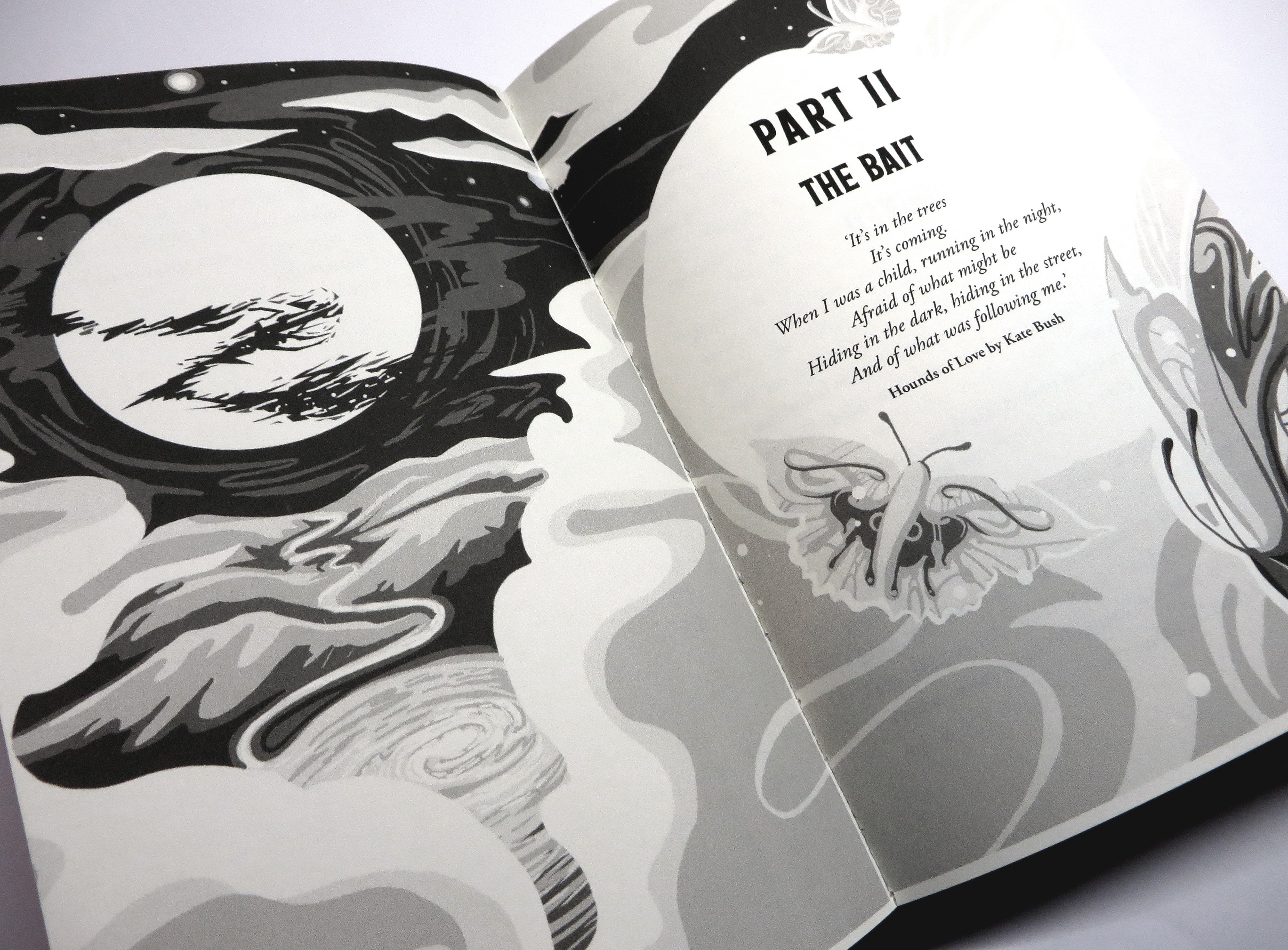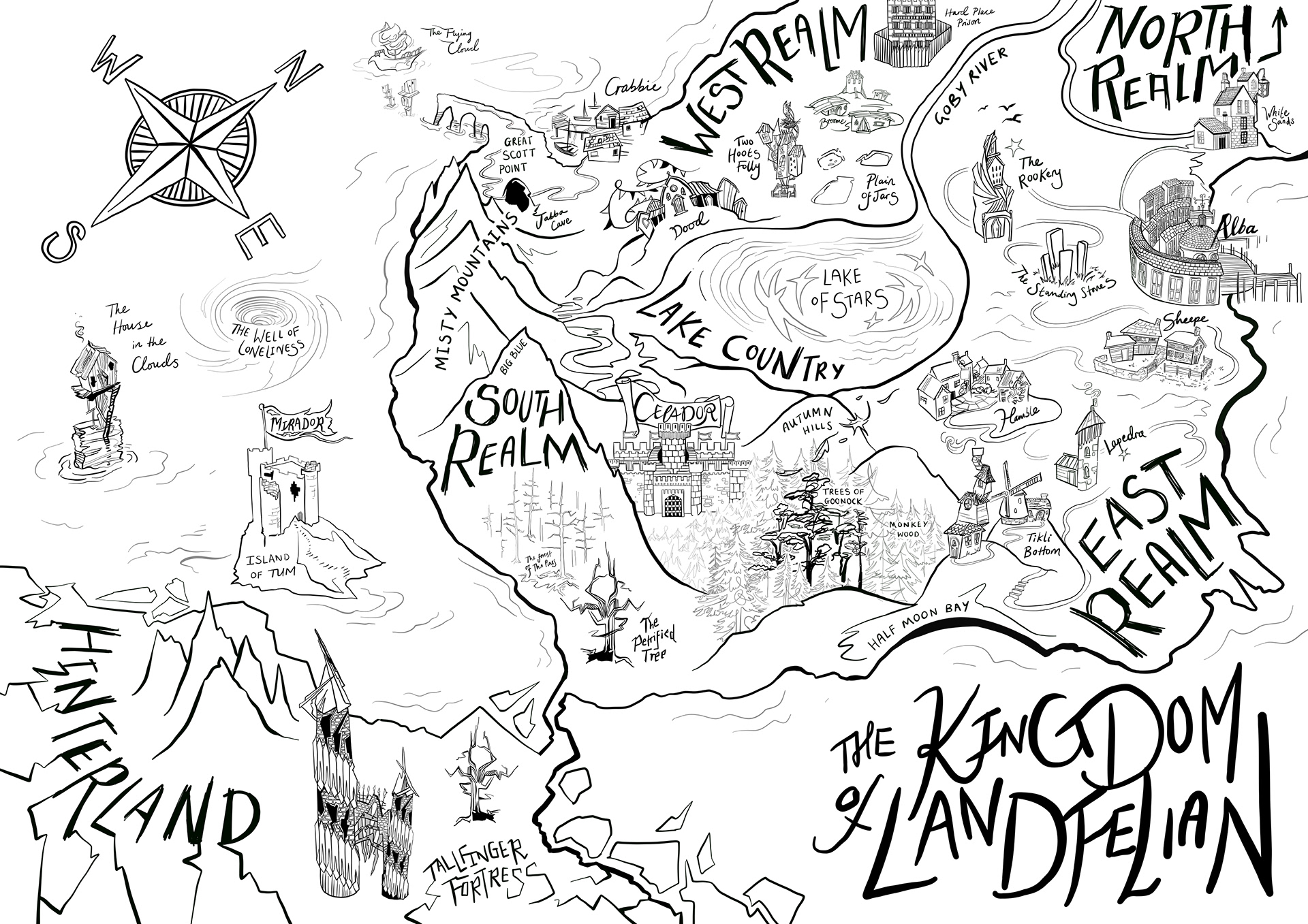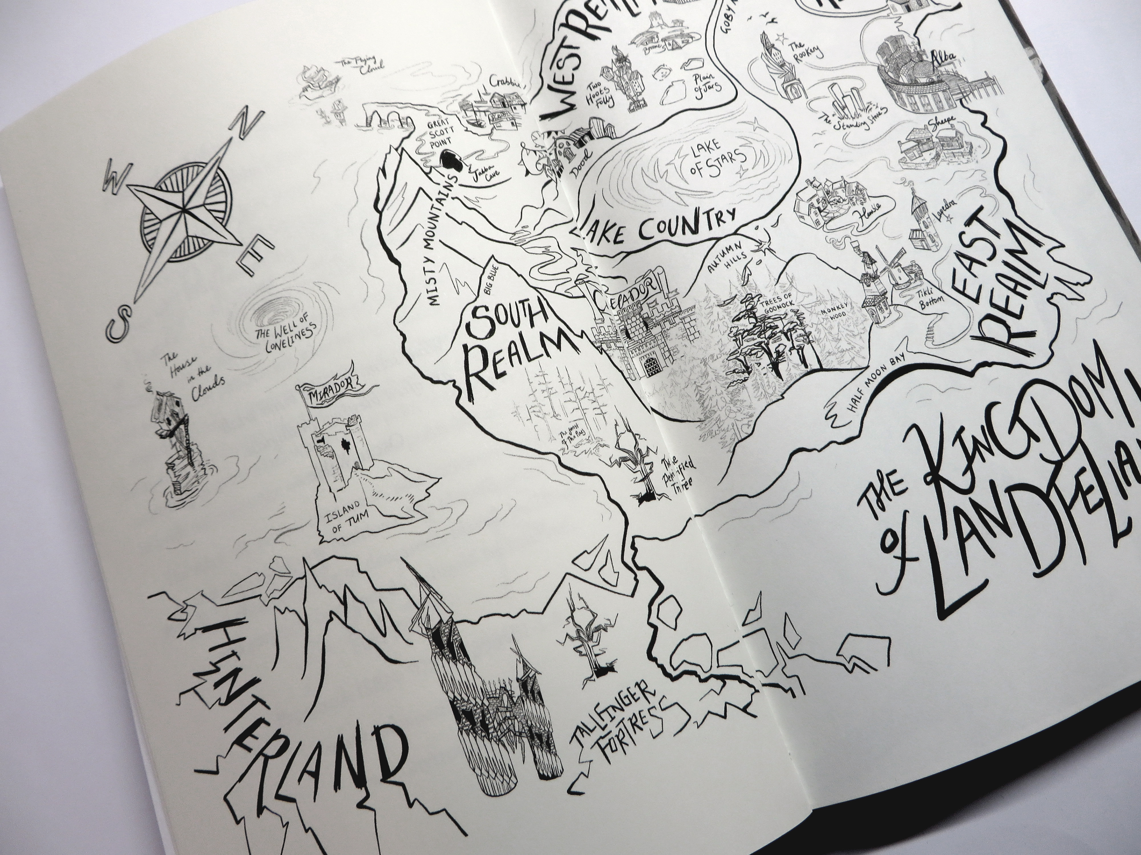 I created illustrations for Rebecca Fox's 'Missing Midnight', the second book in her Landfelian Adventure Trilogy. This involved creating a second map to expand on the world, internal chapter illustrations, and three double-spread full-bleed internal illustrations.